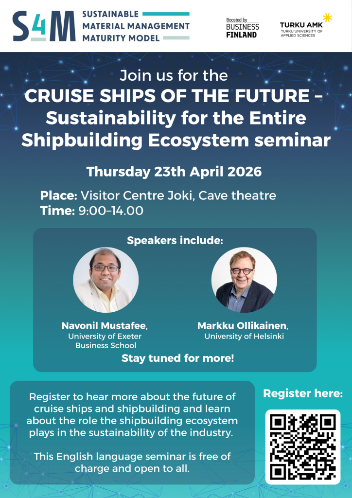A warm welcome to the Cruise Ships of the Future – Sustainability for the Entire Shipbuilding Ecosystem S4M seminar on Thursday the 23th of April 2026.